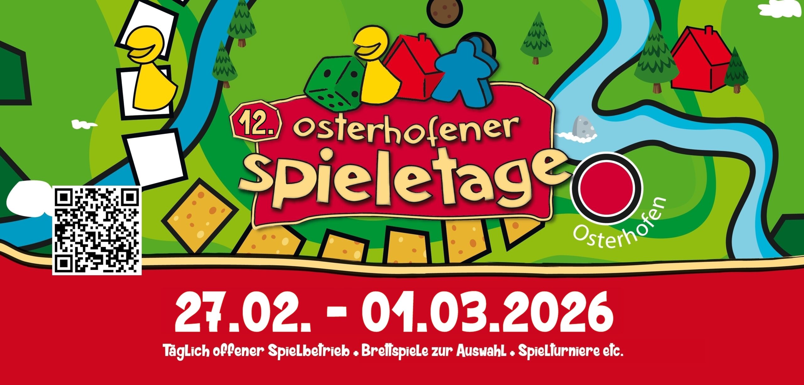 Über die vergangenen Jahre haben sich die Osterhofener Spieletage zu einer festen Größe im Terminkalender der Stadt gemausert. Auch 2026 wird es die große, bunte Familienveranstaltung rund um Gesellschaftsspiele geben. Sie findet von Freitag, 27. Februar bis Sonntag, 01. März in der Stadthalle Osterhofen statt. Die Spieletage werden vom Spiel Verein(t) Osterhofen e.V. durchgeführt, der die Stadt als Veranstalter mit vielen helfenden Händen unterstützt.